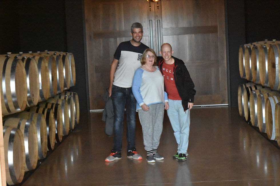 Luckily we had a complete opposite experience at ‘Amelia Park.’ It made the last place look amateurish. To enter, you walk up to these massive wooden doors and as you go in, you are greeted by a long windowless corridor with wooden barrels on each side as you move up to the top of the corridor, two wooden doors automatically open up to the main reception area that consists of a counter in front of the most beautiful view of the winery with the mountains in the background. The main public area was extremely modern and very stylish. I really liked how they made the spectacular view a main feature. The lady that looked after us was extremely friendly and helpful. She was so much more down to earth. I think she enjoyed having a laugh with us crazy Irish! I wouldn’t say many of their visitors would be as friendly as us. Wine people for you!